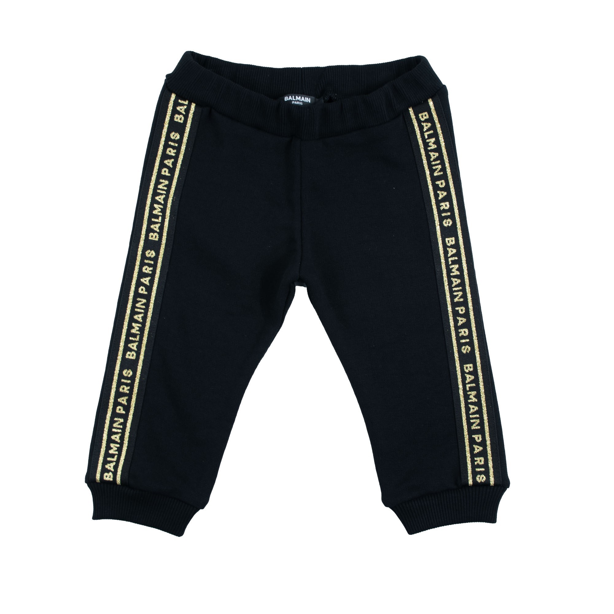 Pantalone in felpa con elastico in vita e applicazione banda nera laterale logata oro
