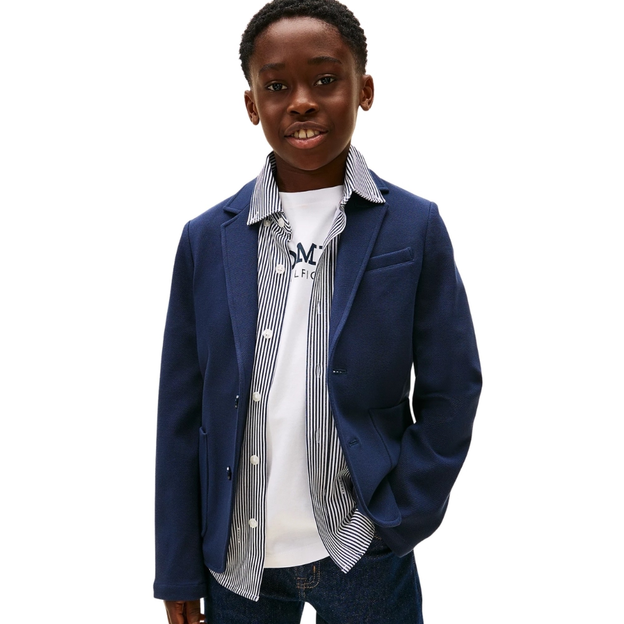 TOMMY HILFIGER Blazer blu navy in piqué bambino