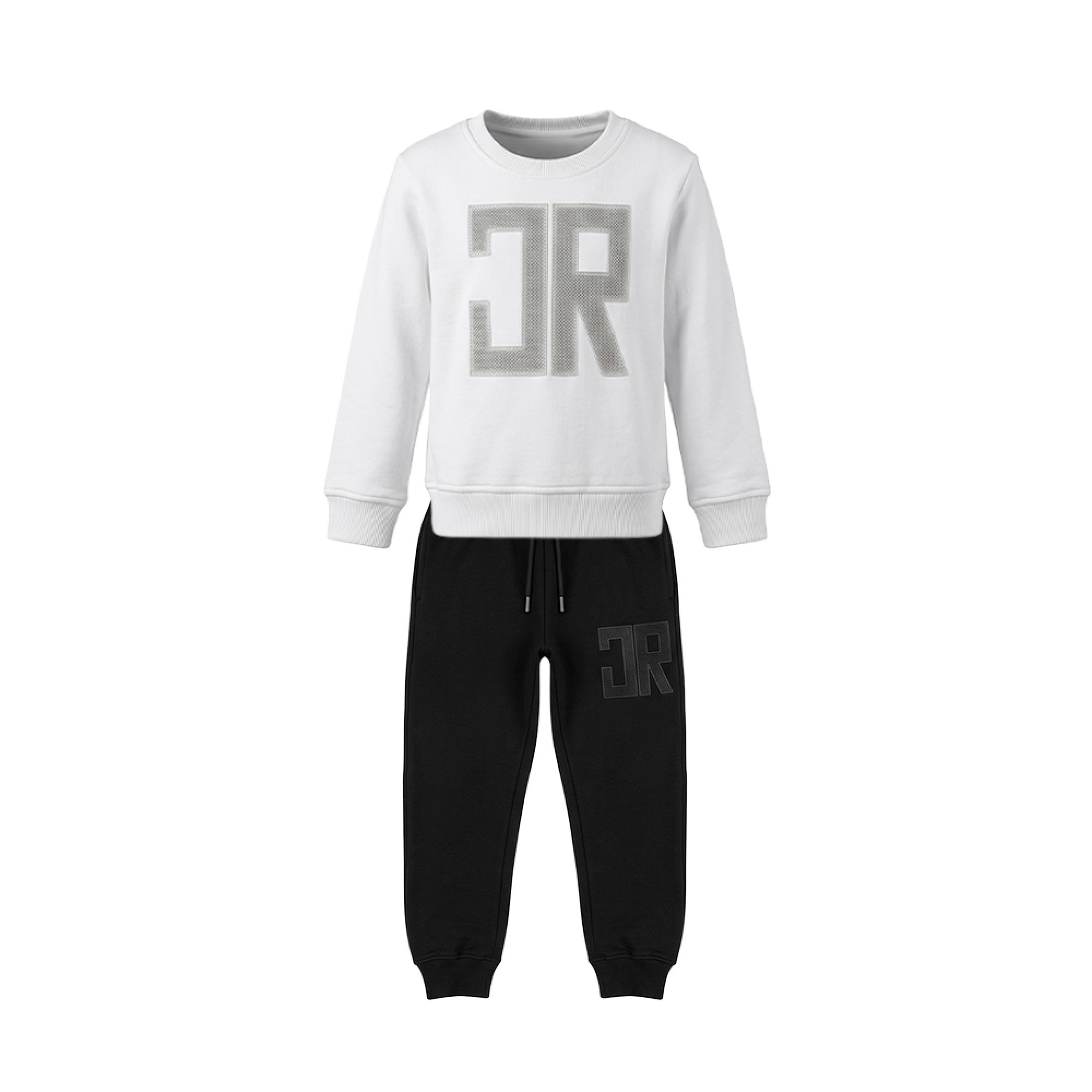 JOHN RICHMOND Tuta bianca e nera in felpa con logo bambino