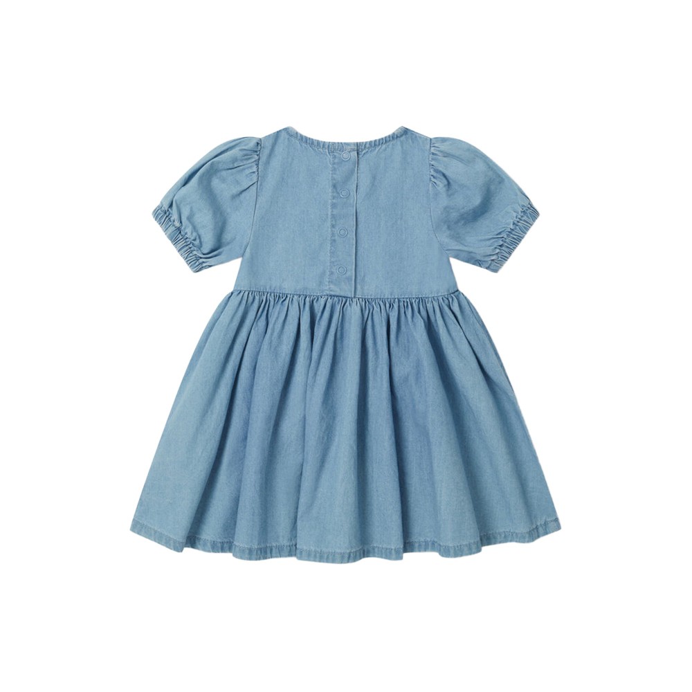 coccinelle ricamate sulle tasche e volant sugli orli. -