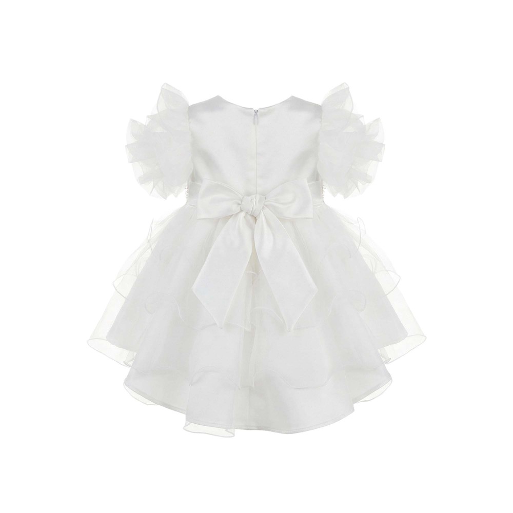 Esterno in tulle, gonna multistrato, maniche volant,
