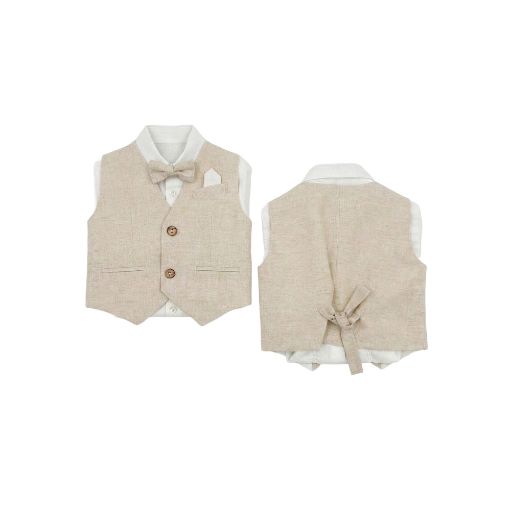 Set composto da papillon beige, camicia bianca in lino,