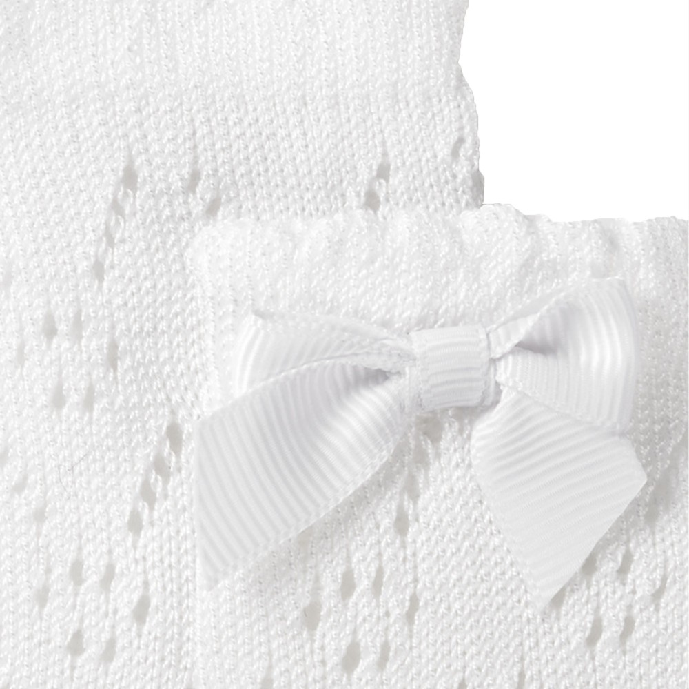 Tutina bianca con roselline rosa ricamate, colletto classico,