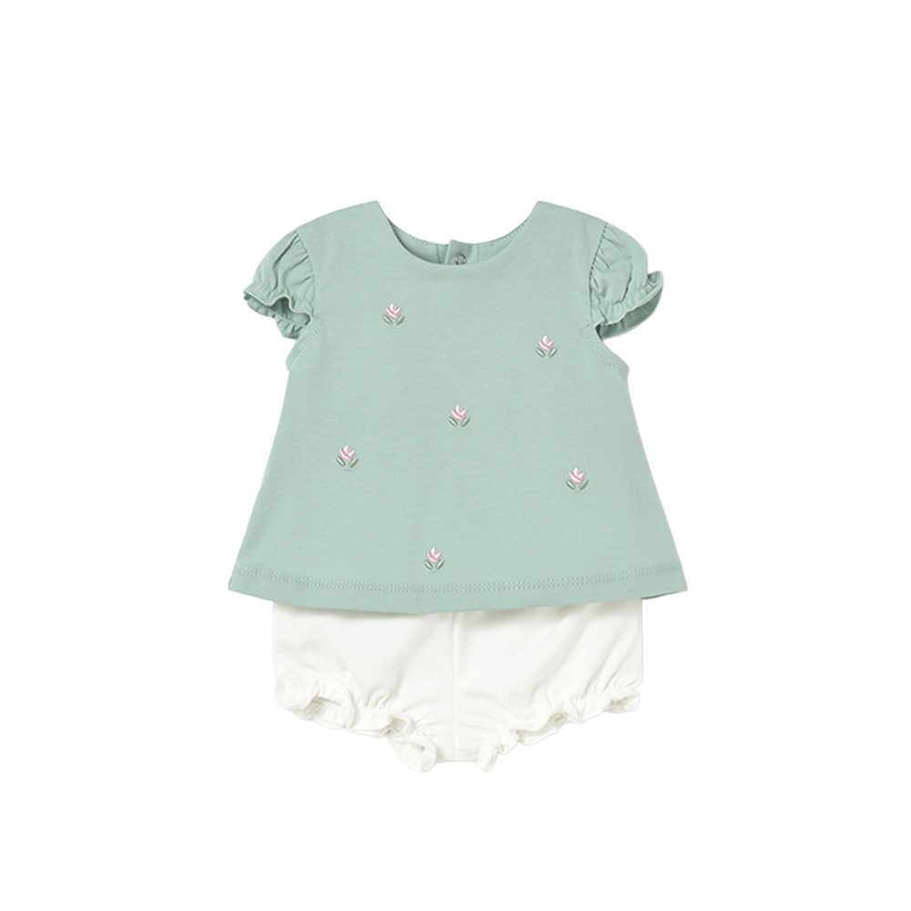 Coulotte salvia copripanno con orli elasticizzati ricamo fiori. -