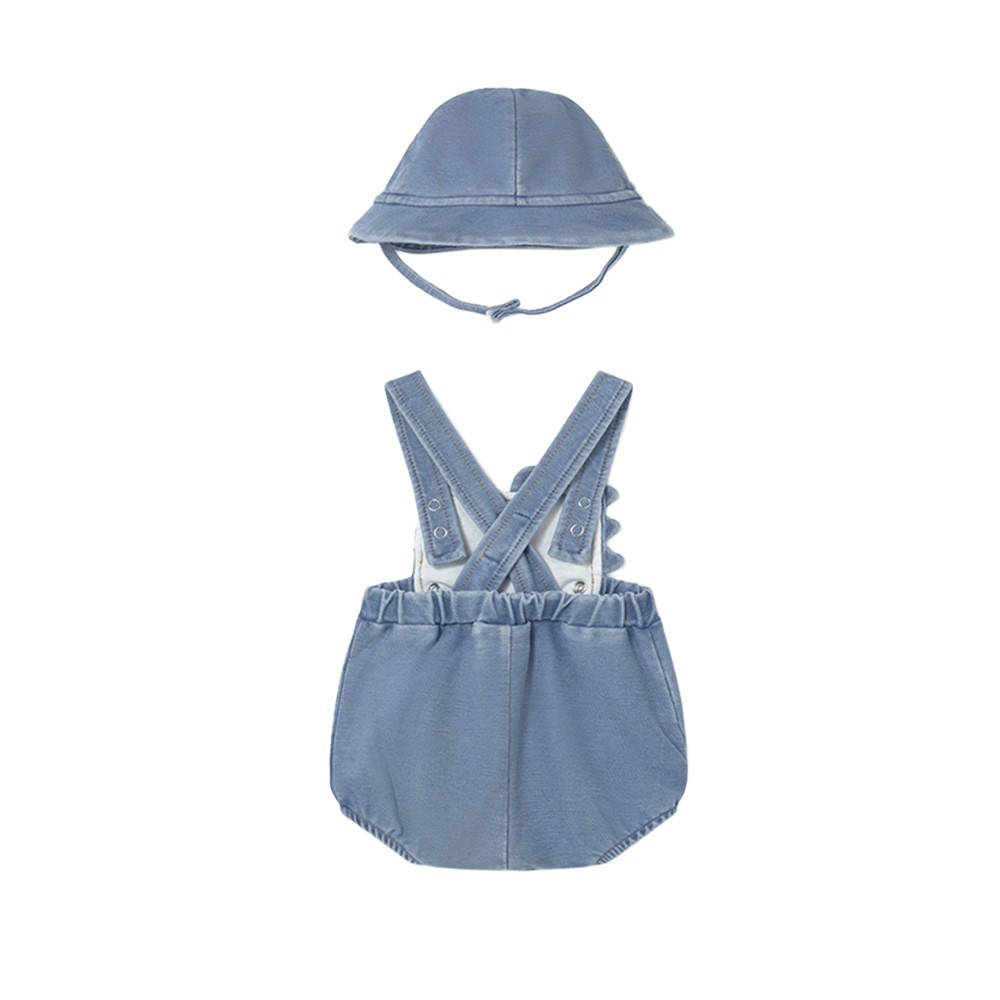 Salopette in denim con bretelle incrociate e design coccodrillo,