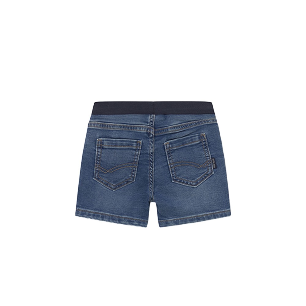 Vita elasticizzata con coulisse e applicazioni laterali azzurre. -