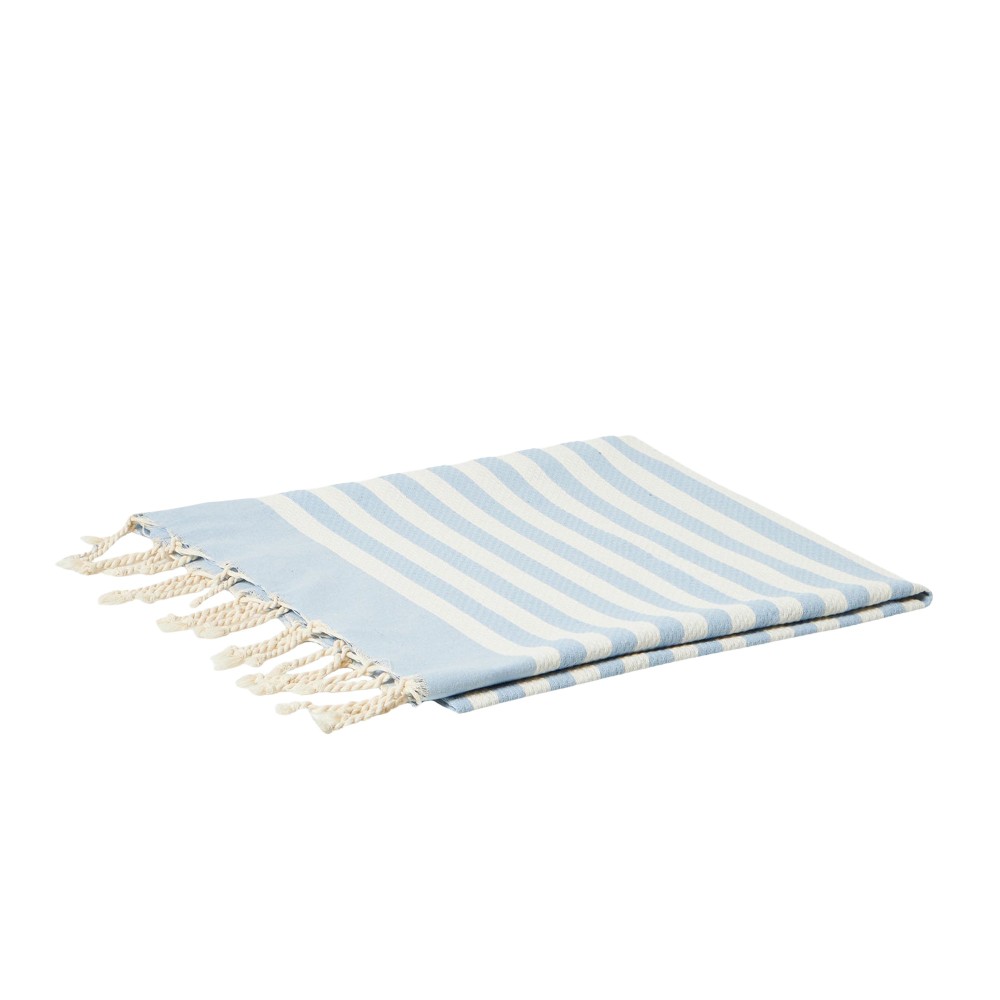 Realizzato in cotone, con motivo a righe orizzontali celesti,