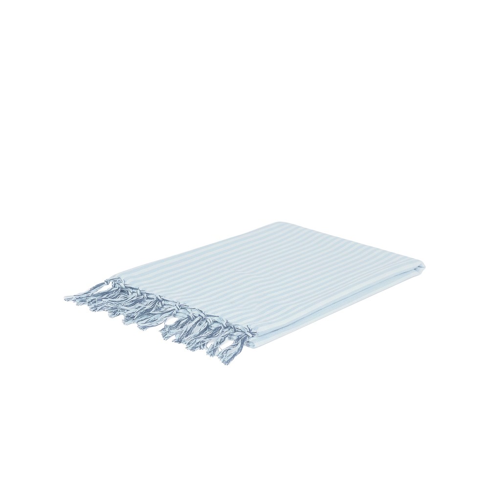 Realizzato in cotone, con motivo a righe celesti e blu,