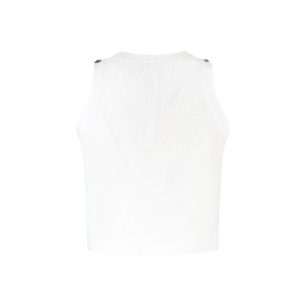 Lavorazione in maglia, cropped fit e bottoni logati. -