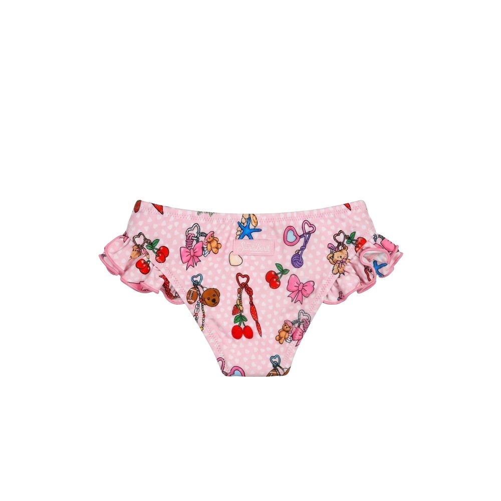 charms multicolore applicati frontali, slip con laccetti laterali. -