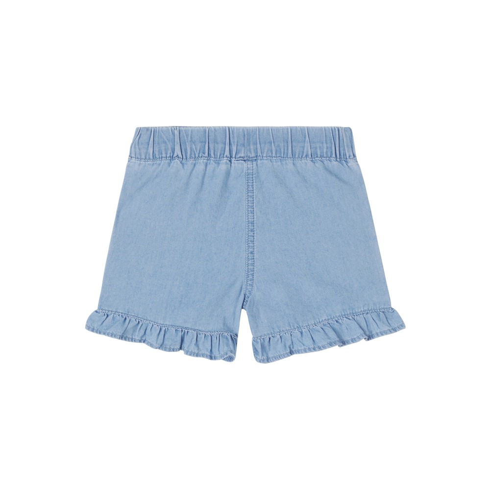 coccinelle ricamate sulle tasche e volant sugli orli. -