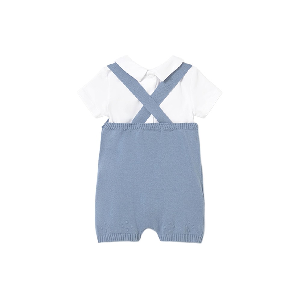 salopette celeste lavorata con orli a costine,
