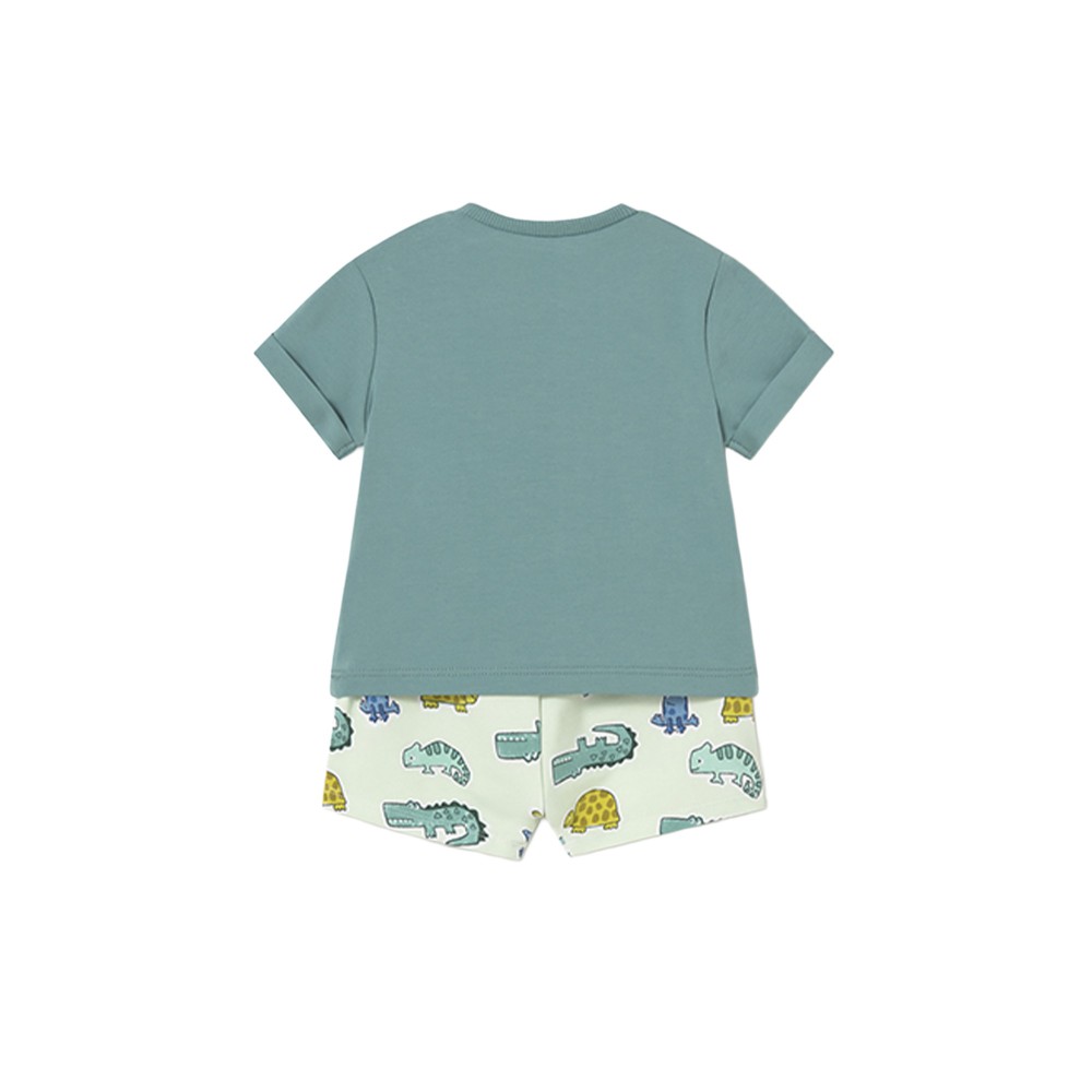 Tutina verde con stampa coccodrillo, bottoni automatici,