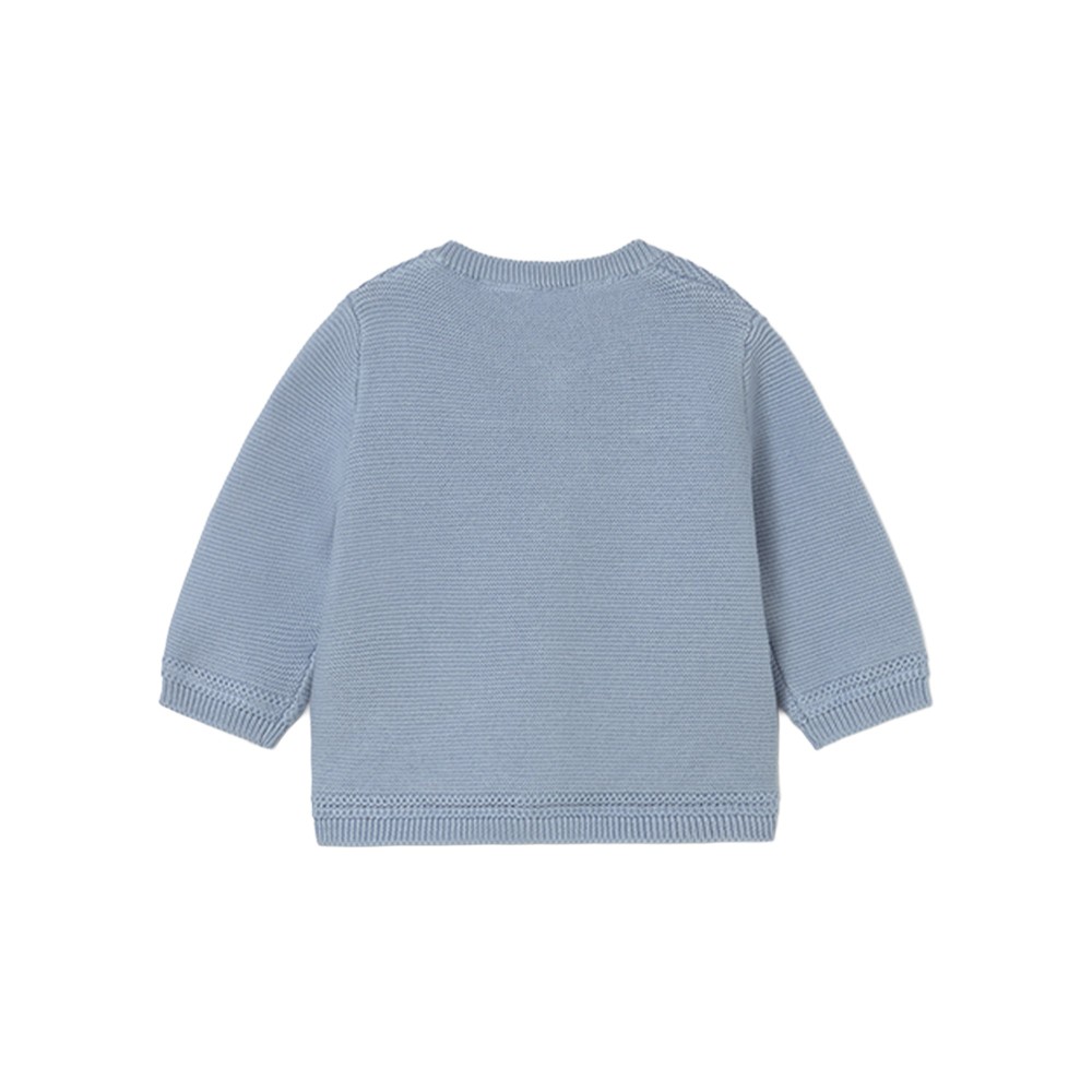 chiusura frontale con bottoni e lavorazione in filato di cotone. -