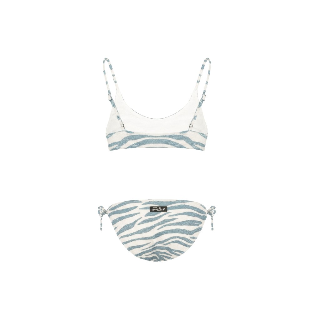 Bikini classico da bambina con top a bralette, chiusura posteriore, spalline sottili regolabili, slip con laccetti laterali. -