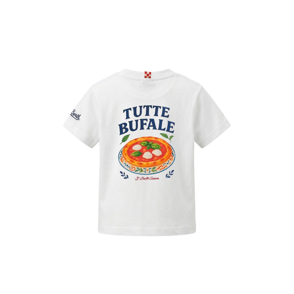 Stampa frontale con scritta "Tutte Bufale", stampa pizza dietro,