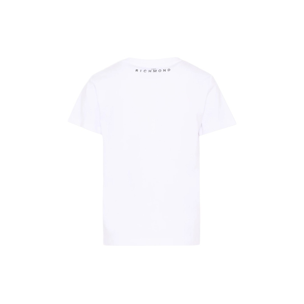 T-shirt bianca con logo piccolo stampato sul petto, maniche corte. -