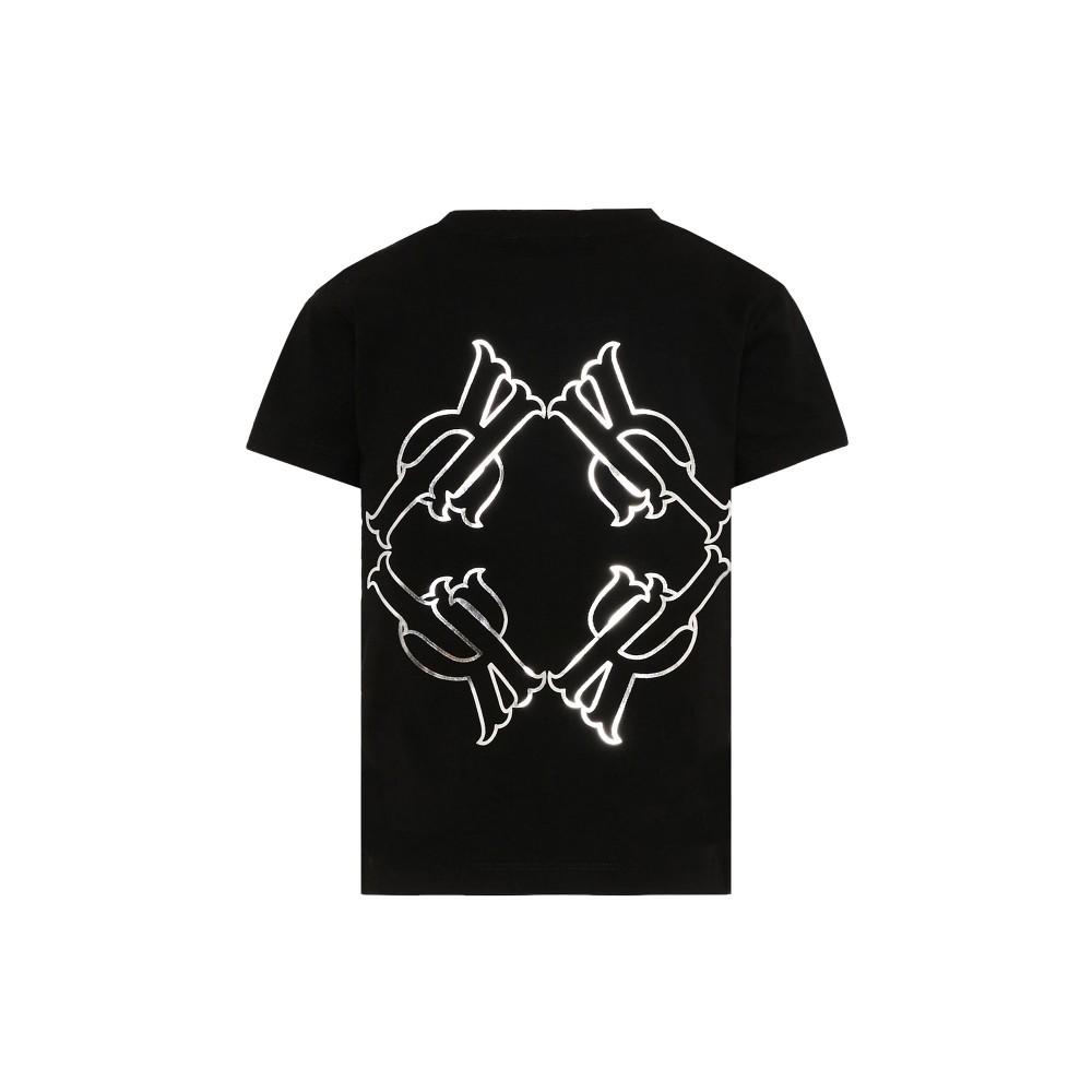 T-shirt nera con logo piccolo stampato sul petto, maniche corte. -
