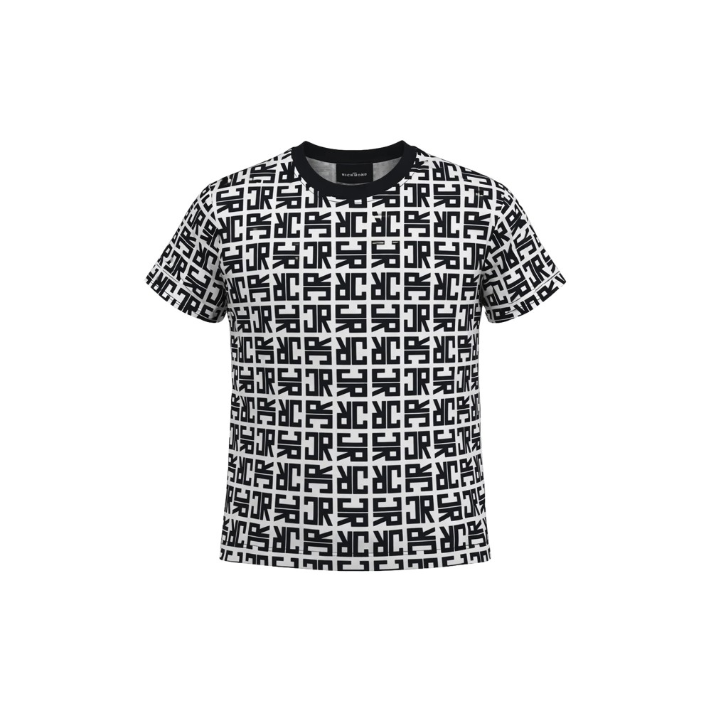 T-shirt con logo all-over, shorts con logo bianco goffrato,