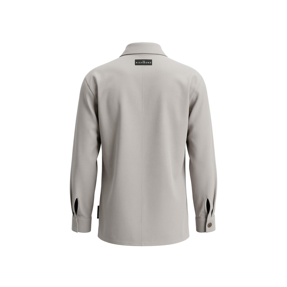 Camicia grigia basic con colletto aperto e chiusura nascosta,