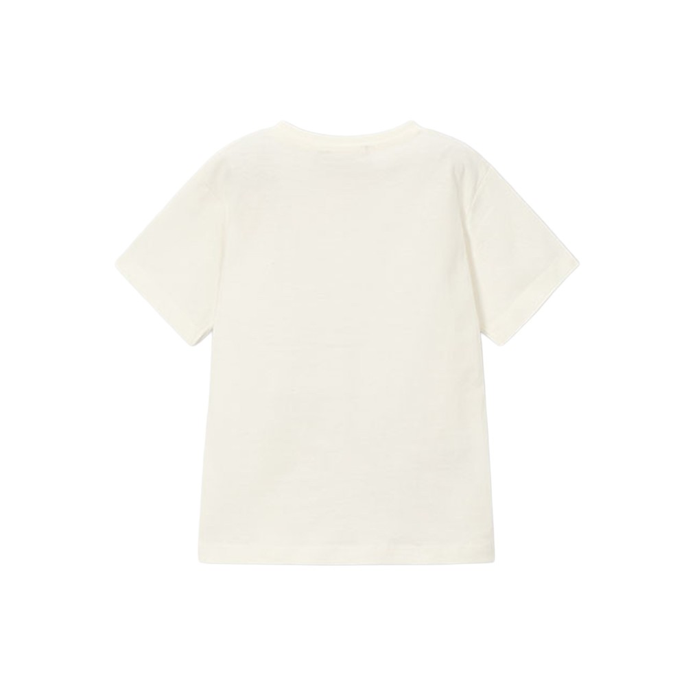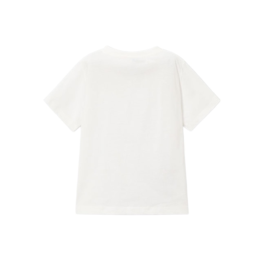 T-shirt bianca a maniche corte con stampa robot sul petto,