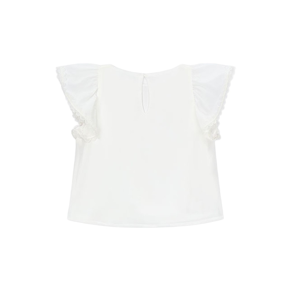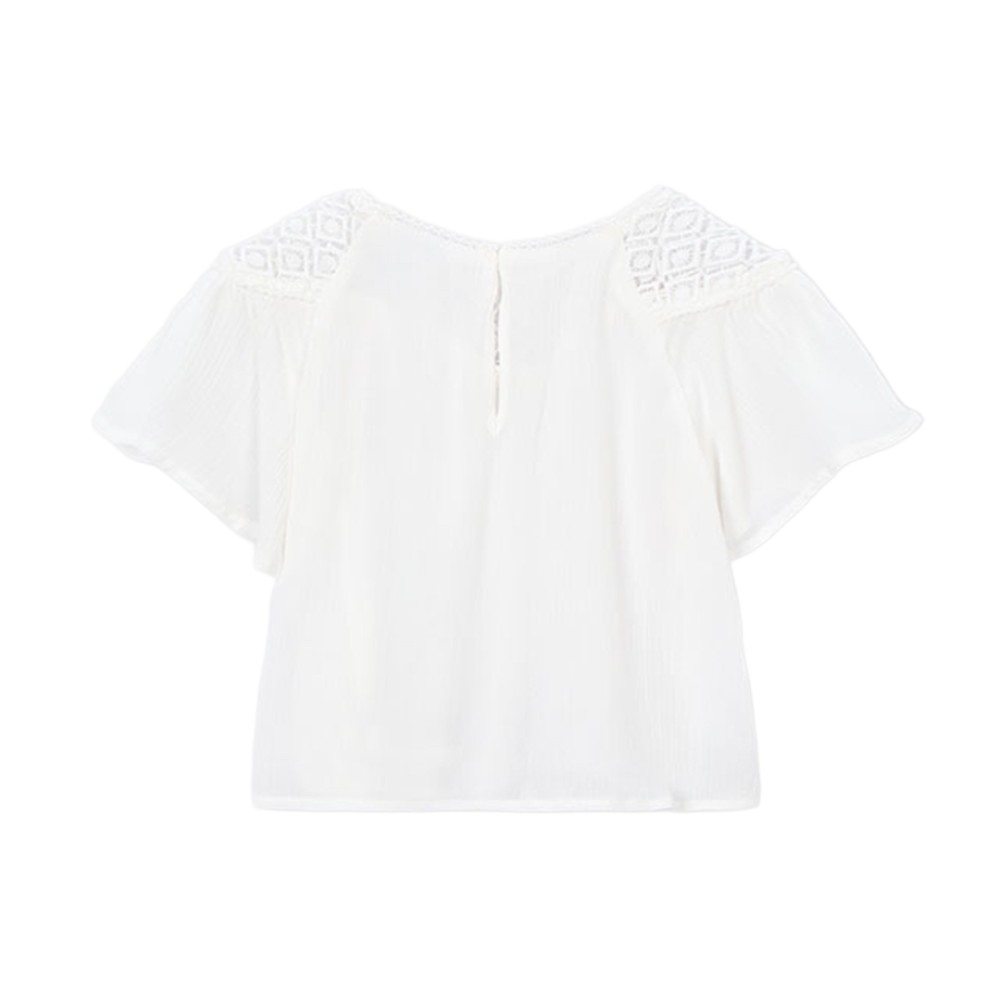 Realizzata in chiffon, maniche corte con orli con merletto. -