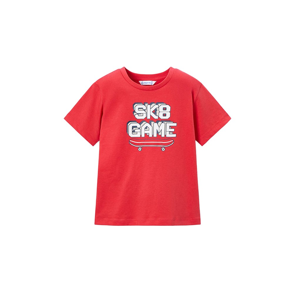 t-shirt rossa a maniche corte con stampa "game over" sul petto,