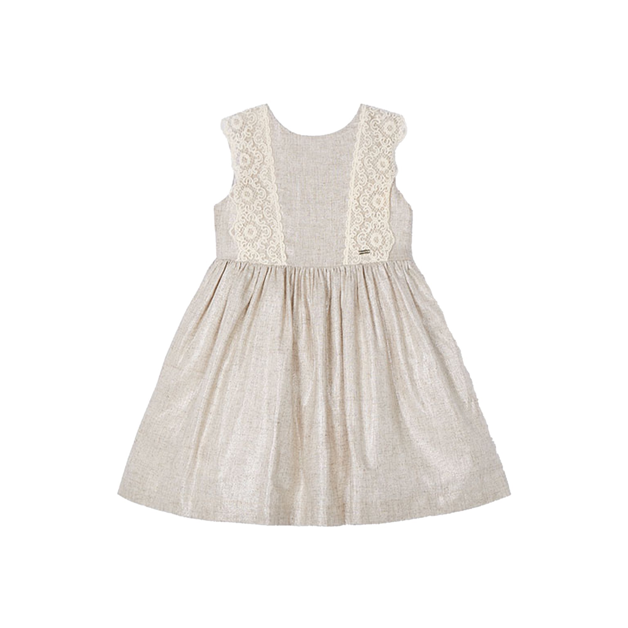MAYORAL Abito beige in lino dettagli crochet bambina
