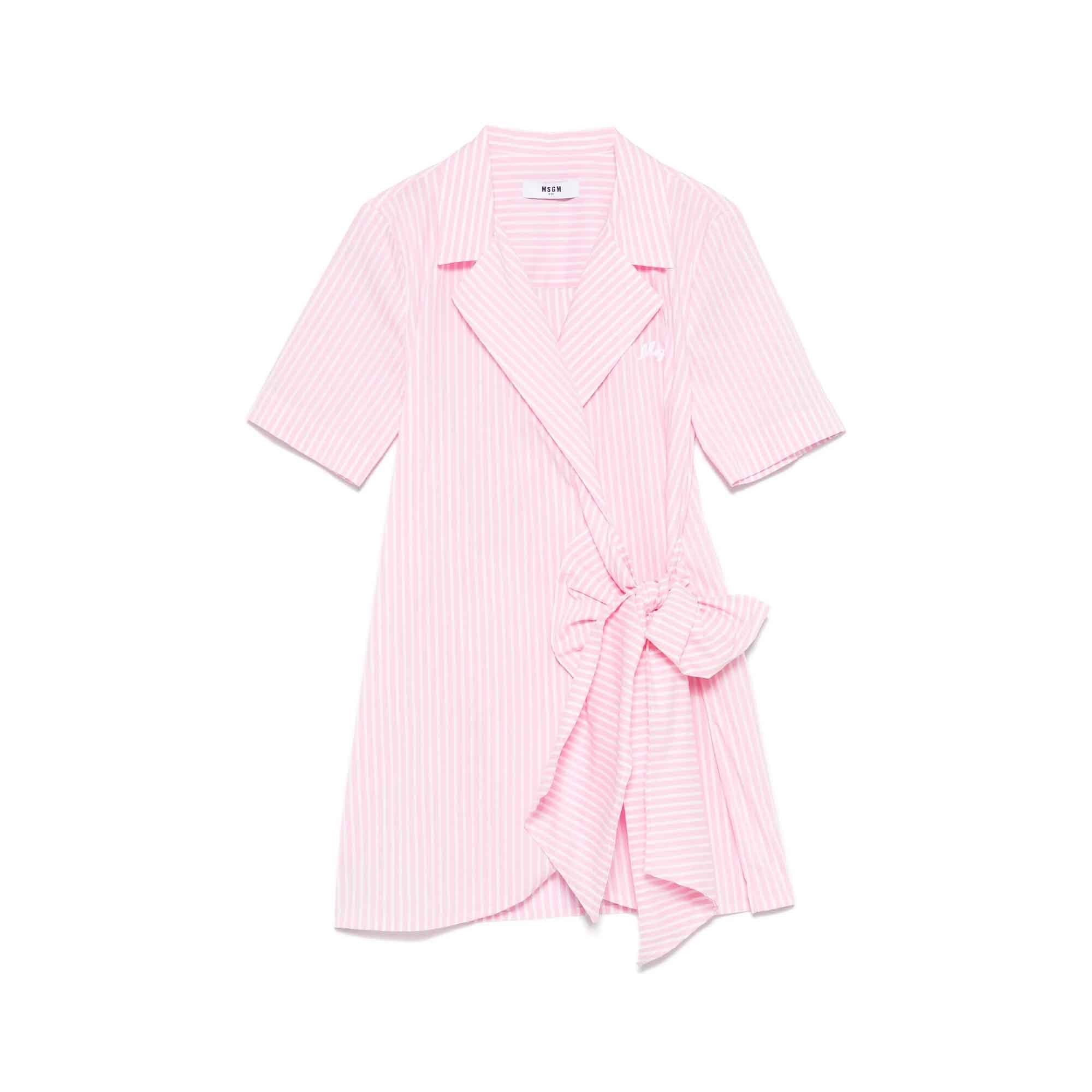 MSGM Abito rosa a righe con colletto e fiocco bambina