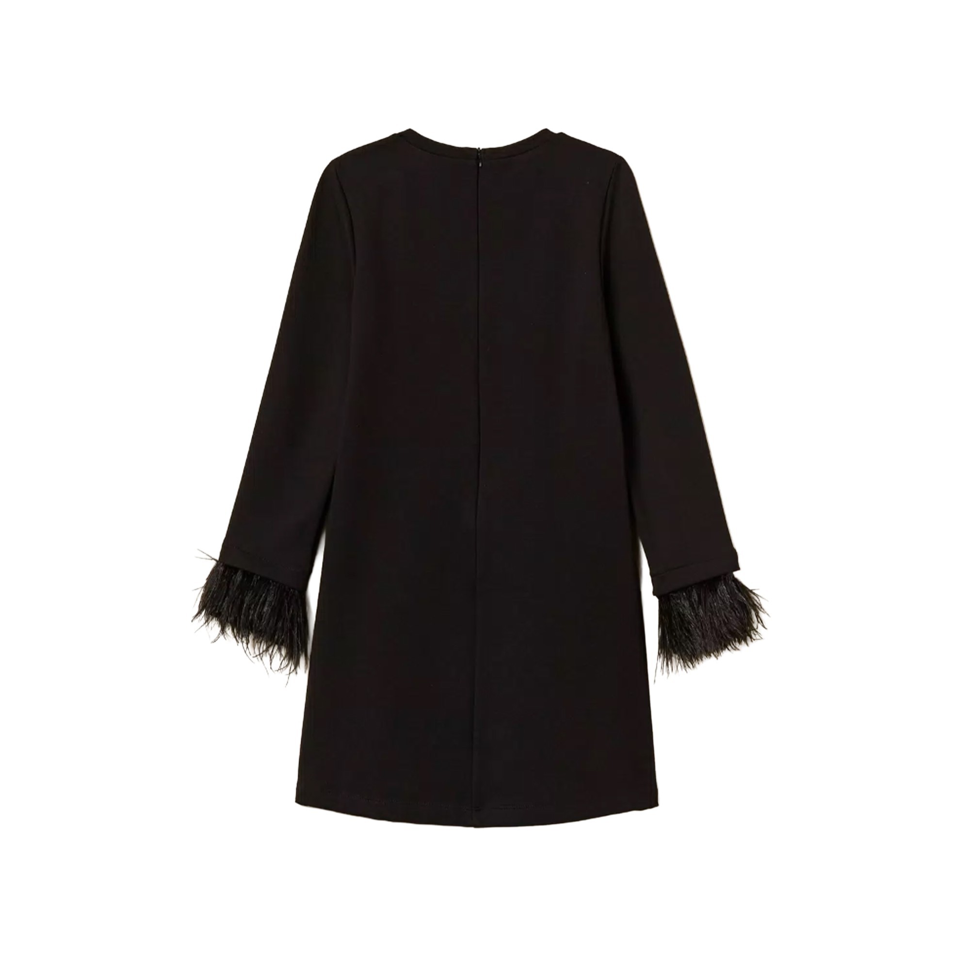 TWIN-SET Abito nero con tasche e piume bambina