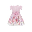 cintura rosa in vita con fiori applicati, fiocco sul retro.