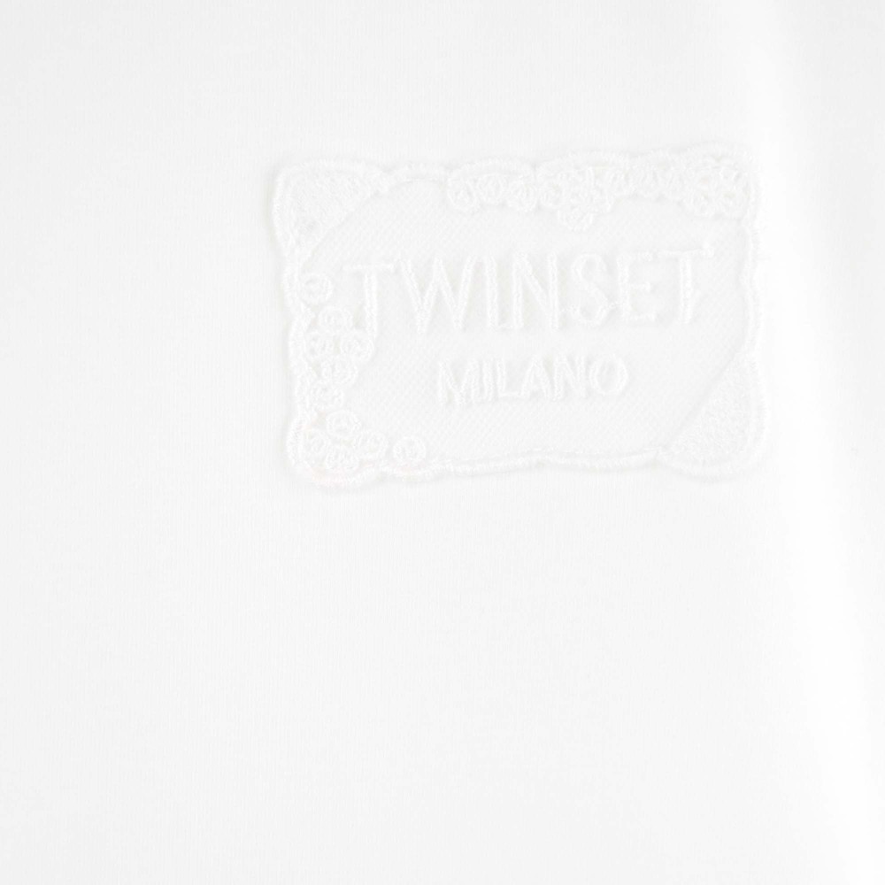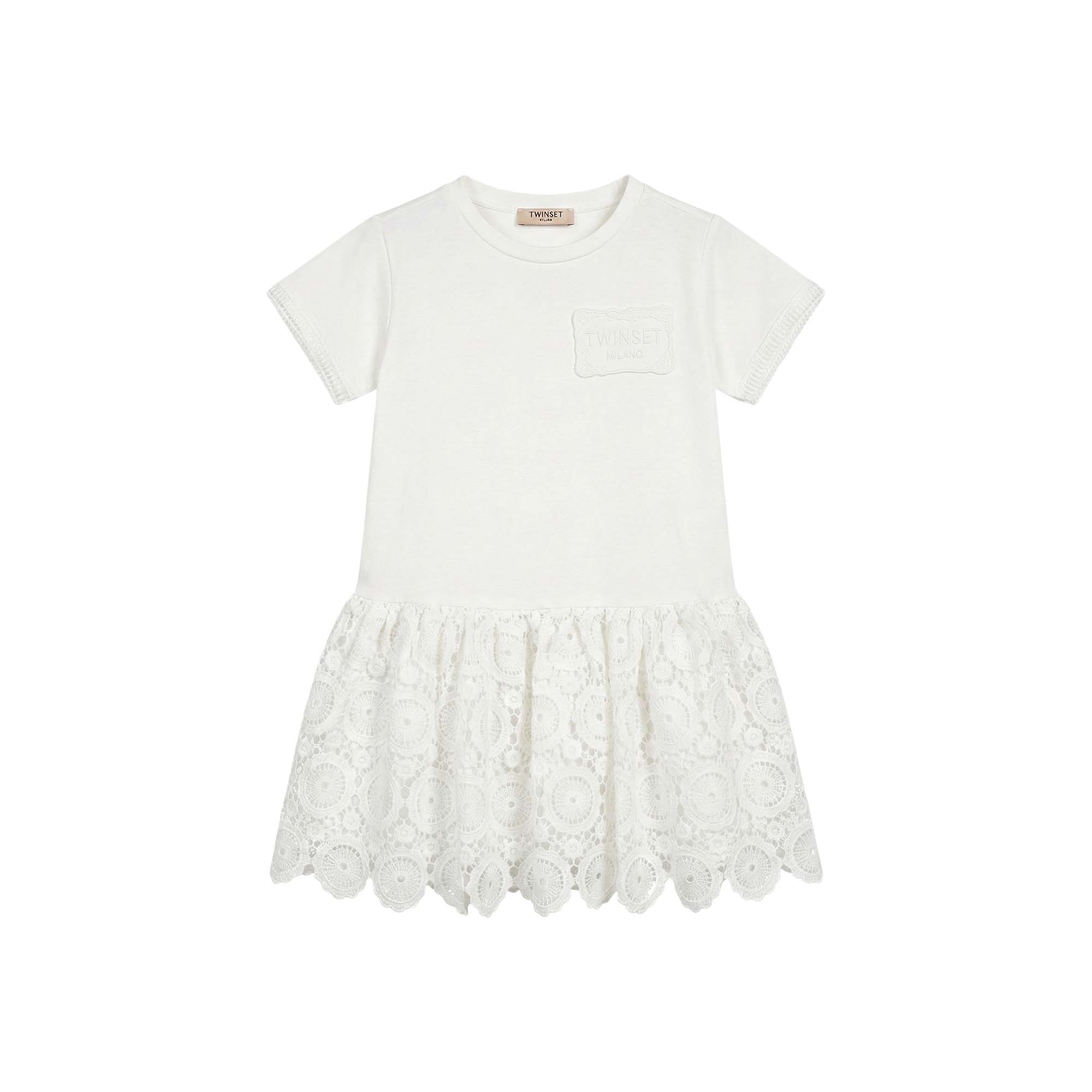 TWIN-SET Abito bianco con gonna macramè bambina