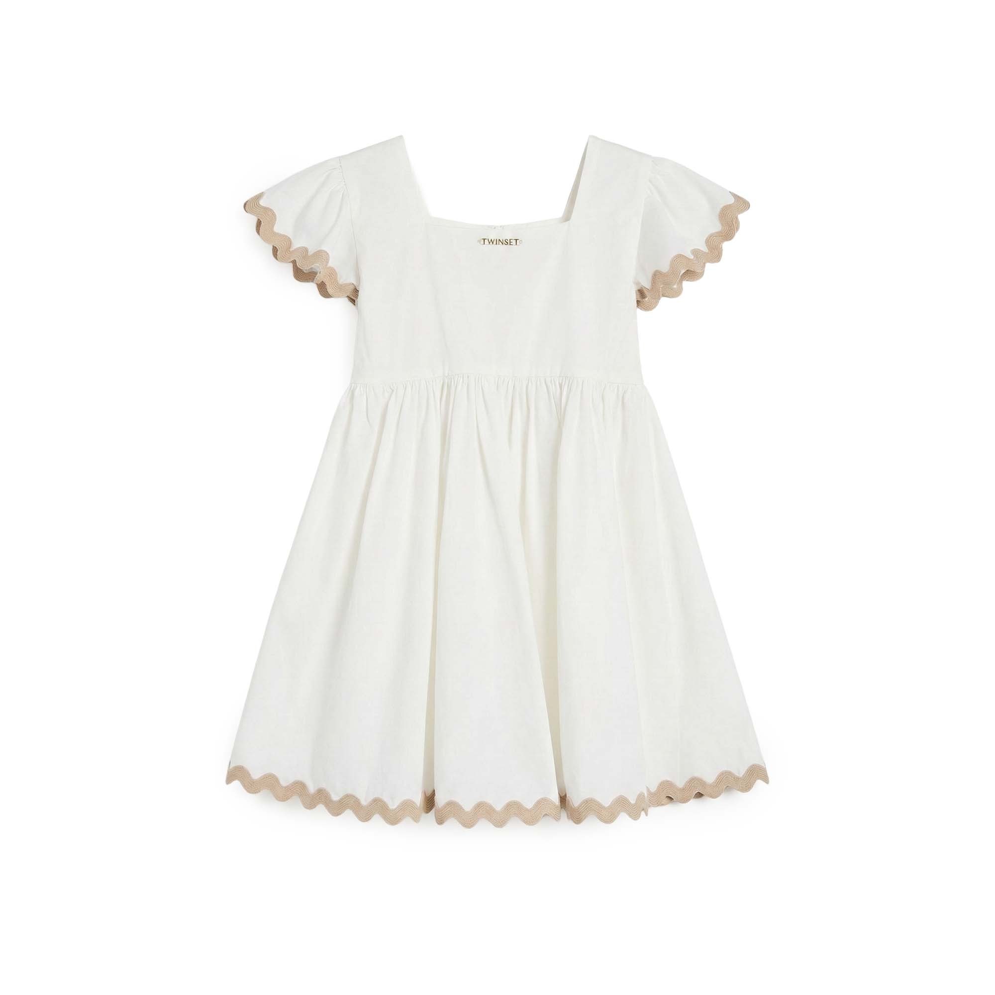 TWIN-SET Abito bianco con orli beige bambina