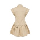 bottoni logati frontali. gonna mobida plissettata, maniche corte.