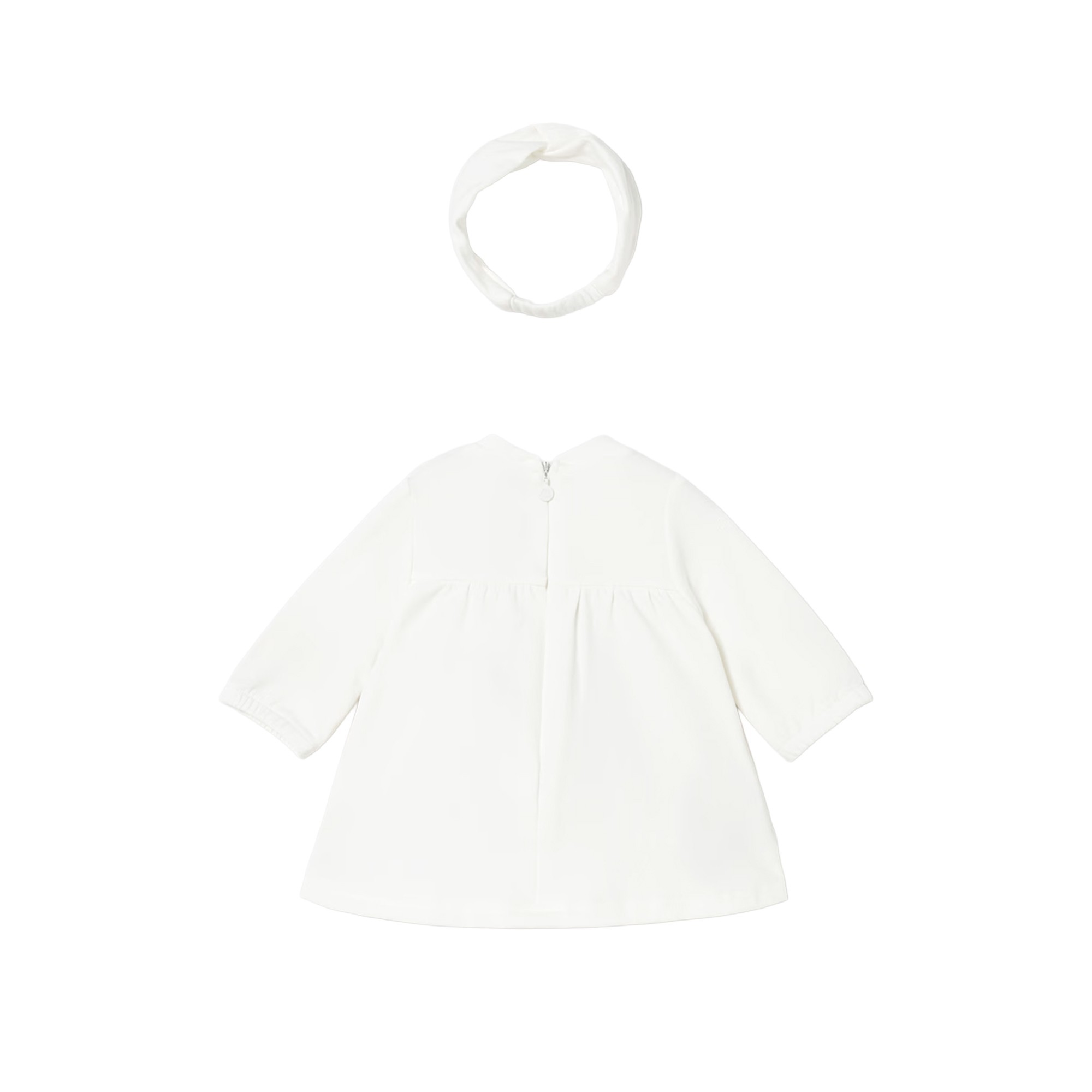 MAYORAL NEWBORN Vestito bianco con borsa e fascia neonata