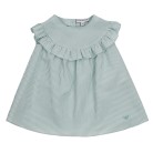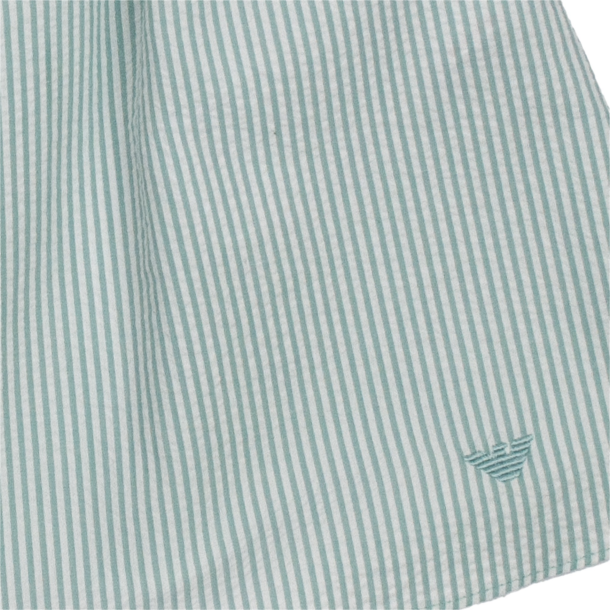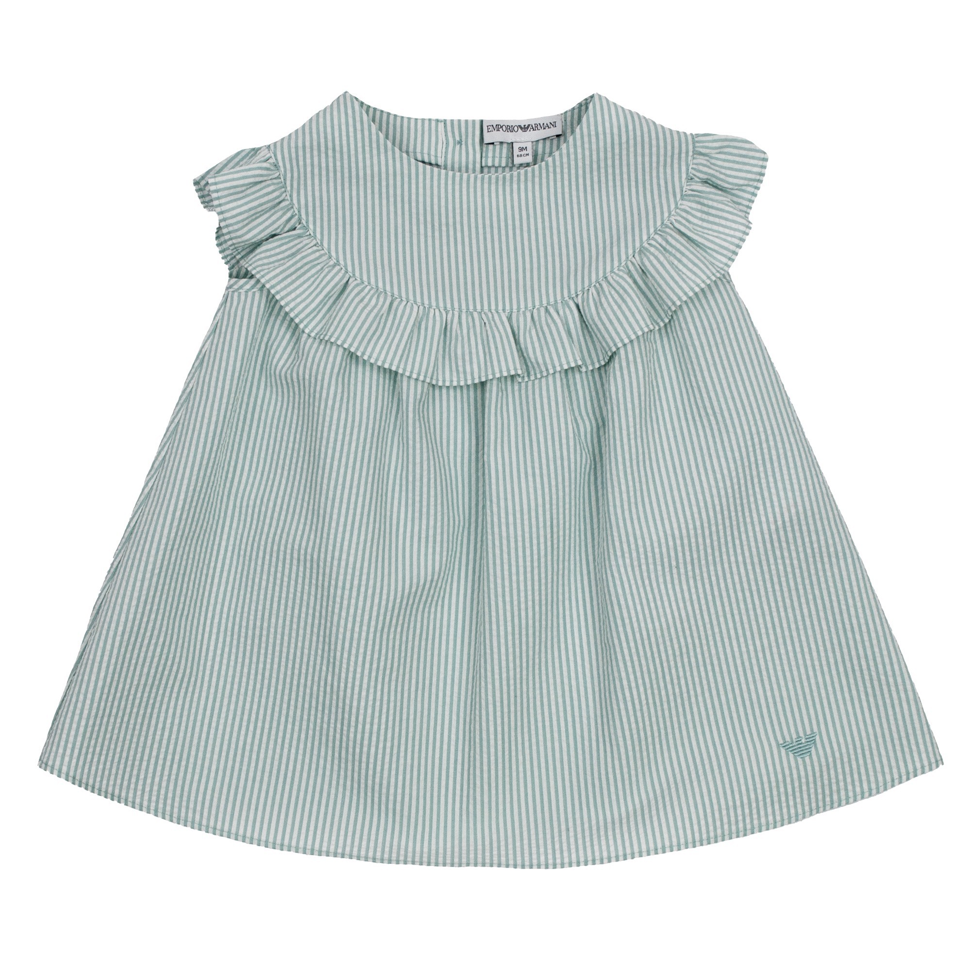 EMPORIO ARMANI Abito con rouches in tessuto seersucker rigato verde neonata