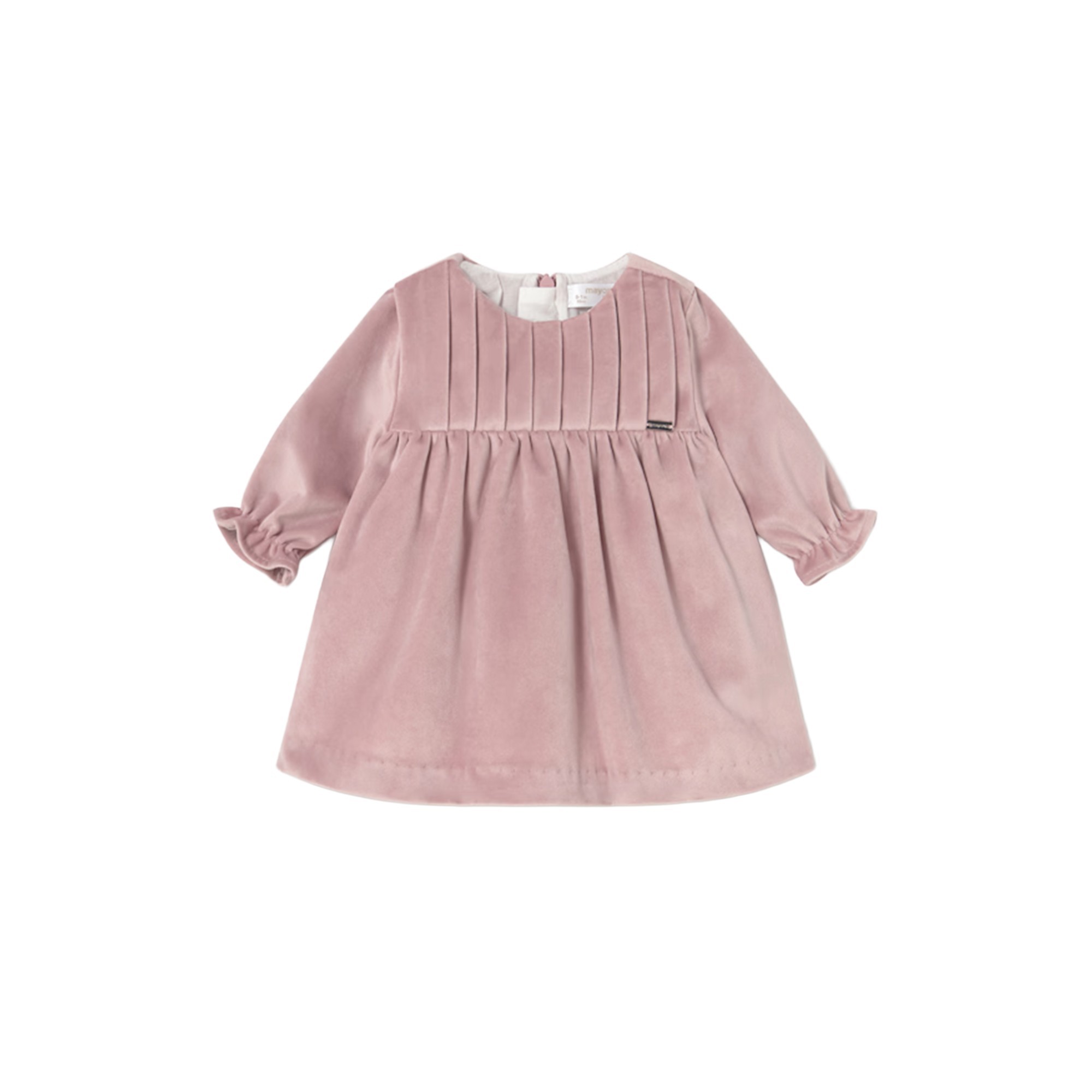 MAYORAL NEWBORN Vestito rosa in velluto neonata