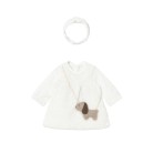 MAYORAL NEWBORN Vestito bianco con borsa e fascia neonata