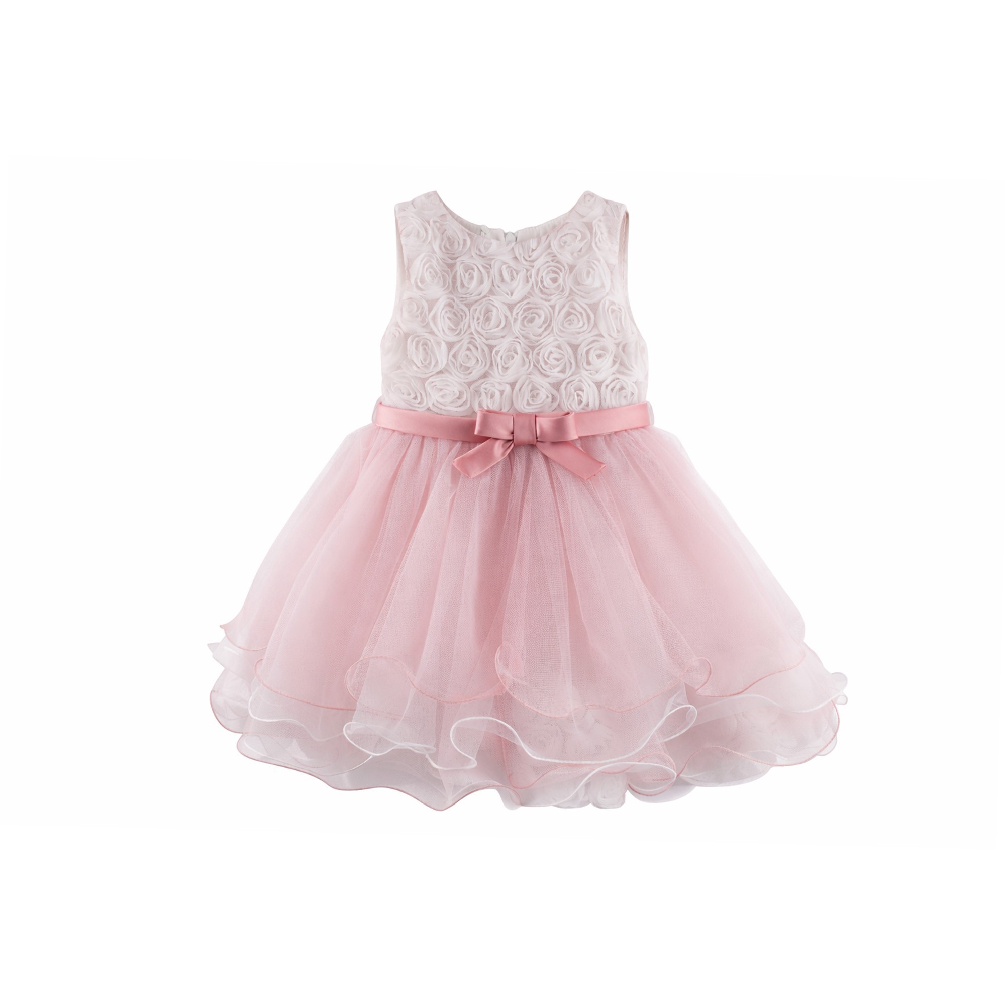COLORI CHIARI Abitino rosa con corpetto con rose neonata