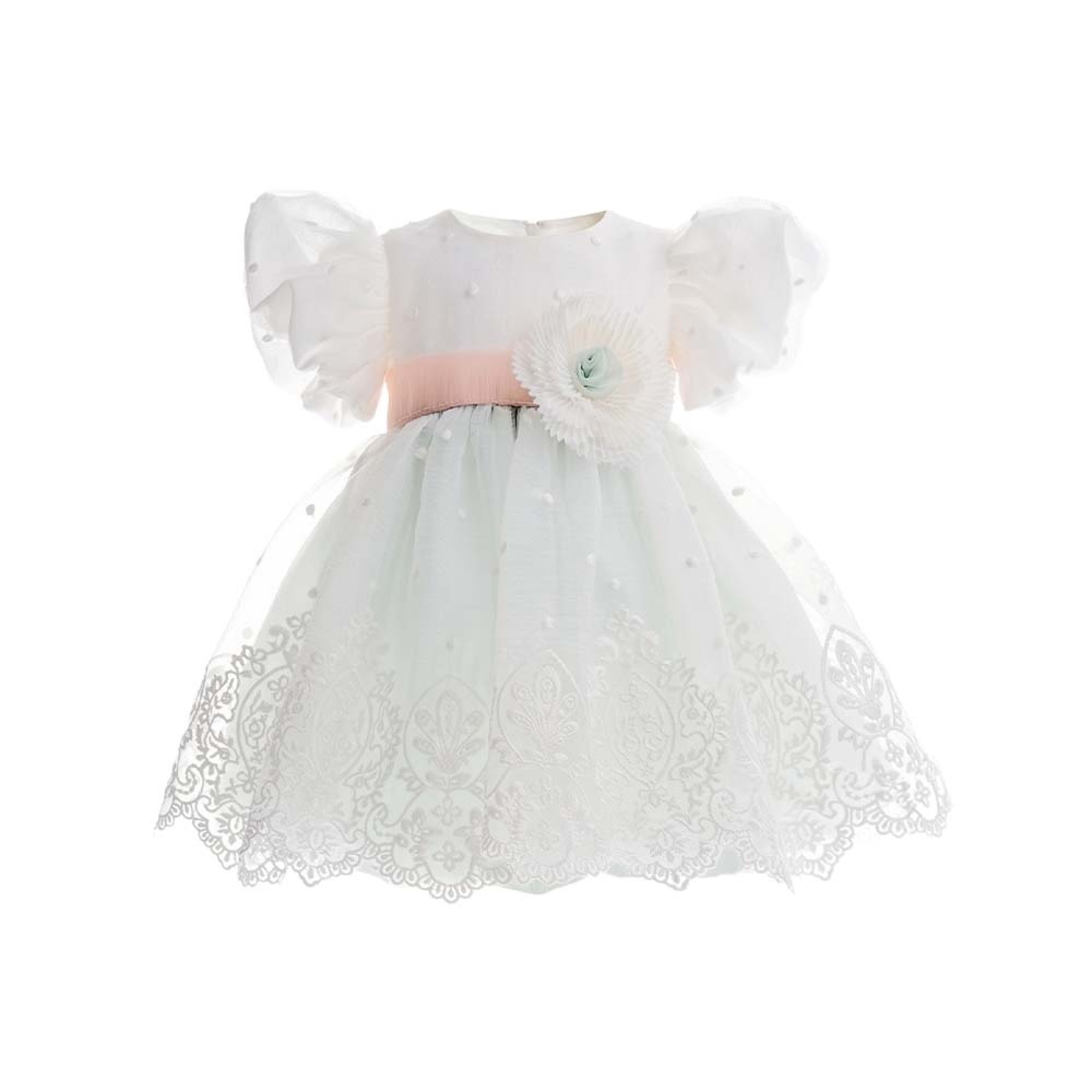 MARLU' Abitino bianco e verde con fiore neonata