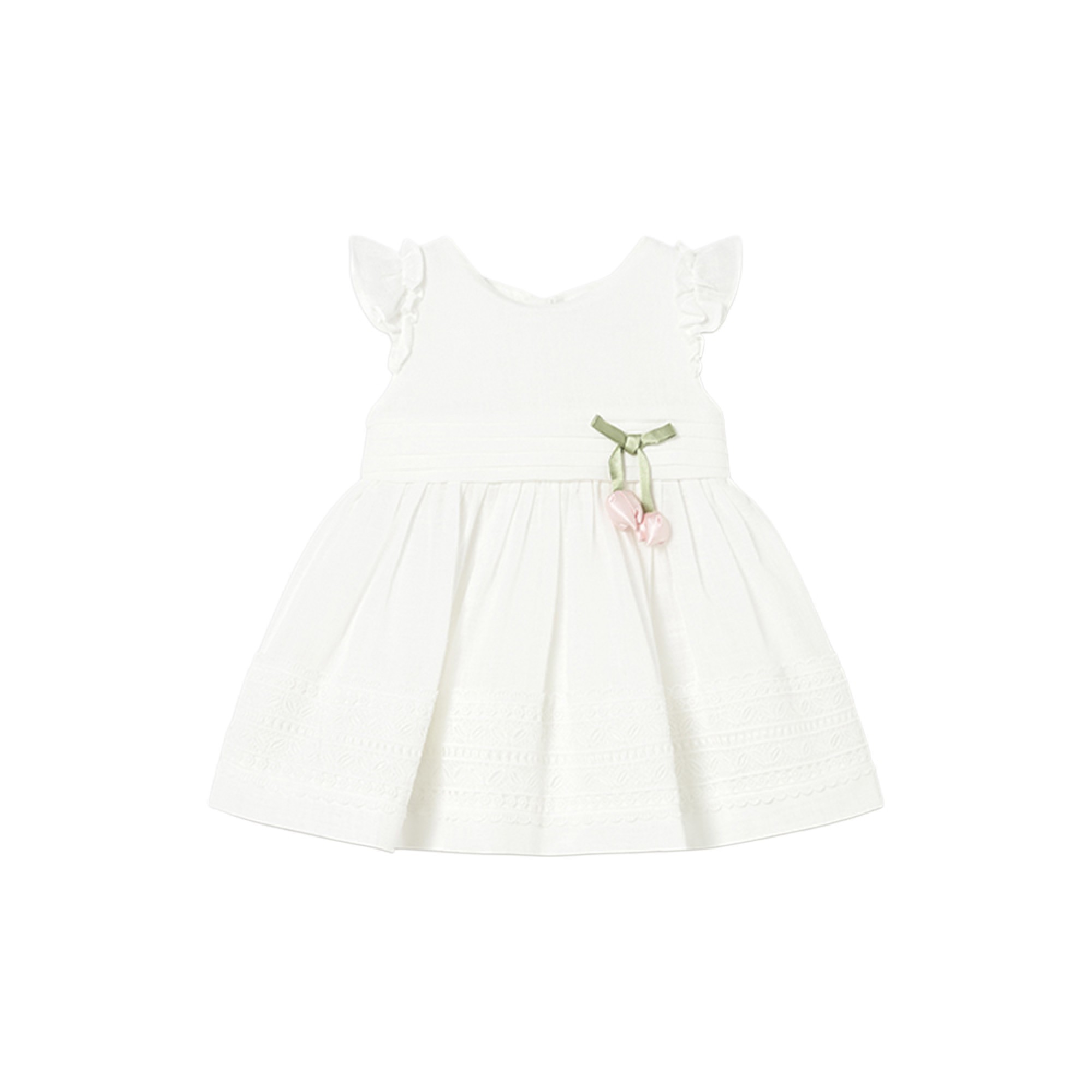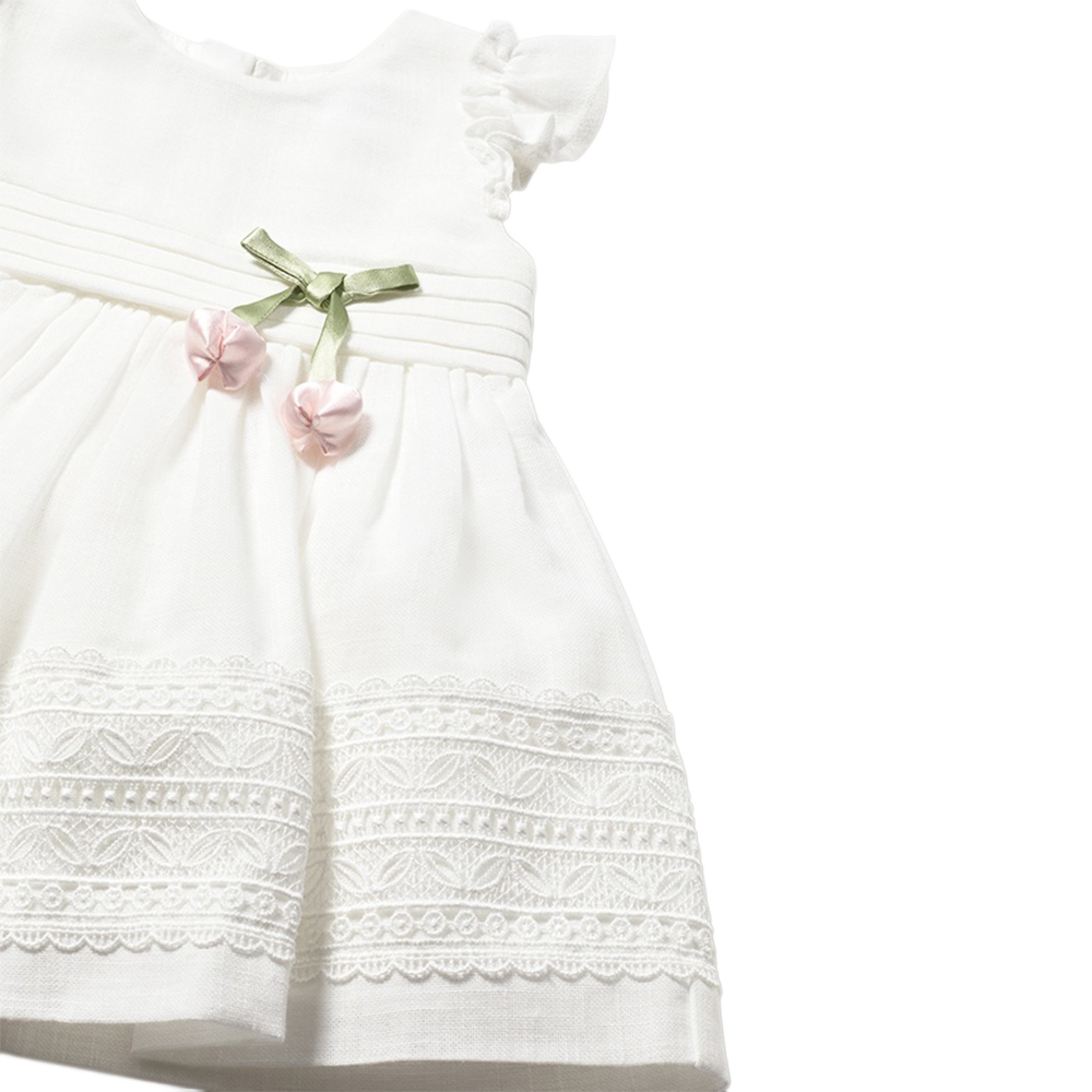Abitino con maniche corte volant, fascia in vita con fiore,