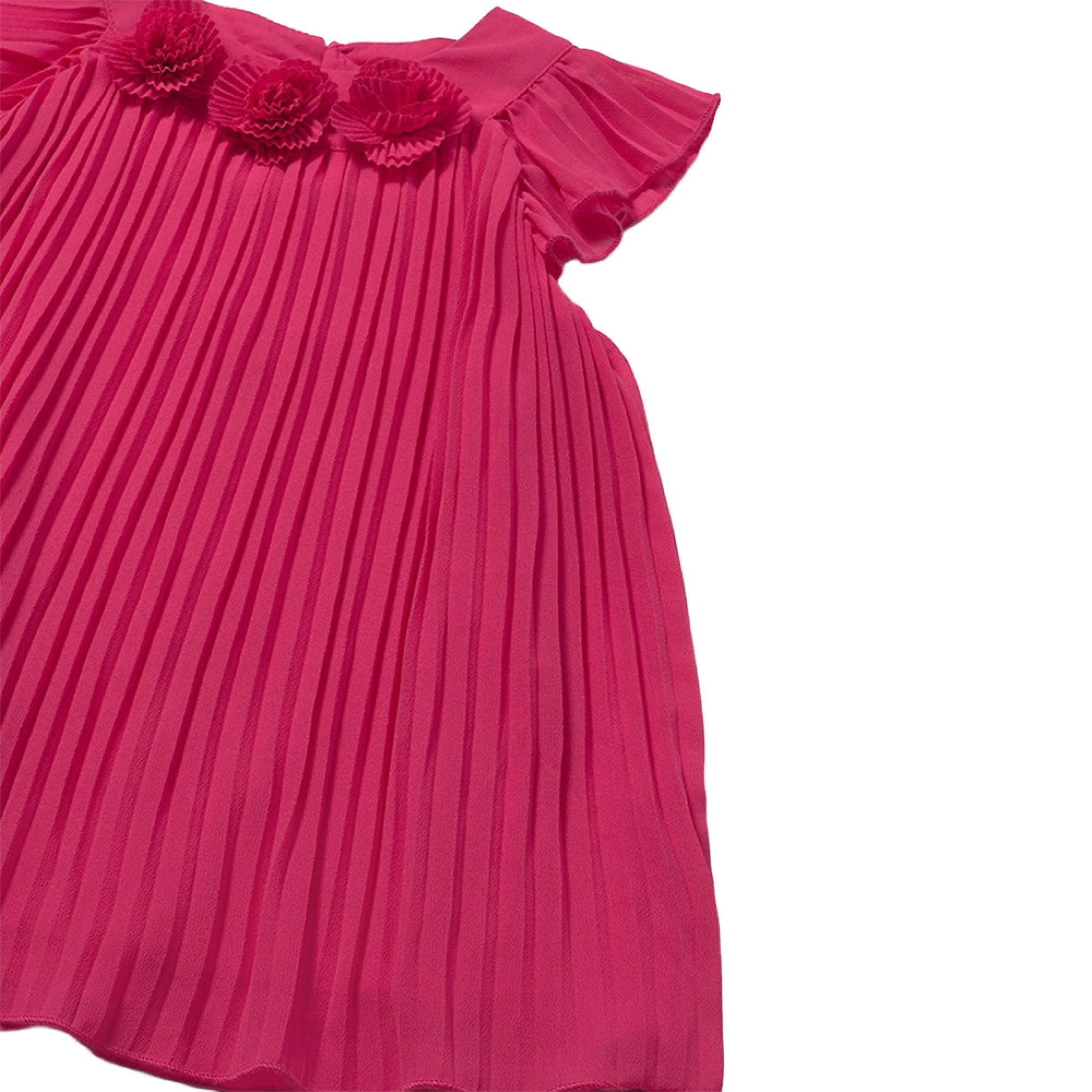 fiori applicati sul girocollo e chiusura con bottoni sul retro.