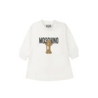 MOSCHINO Abito bianco con orsetto e logo neonata
