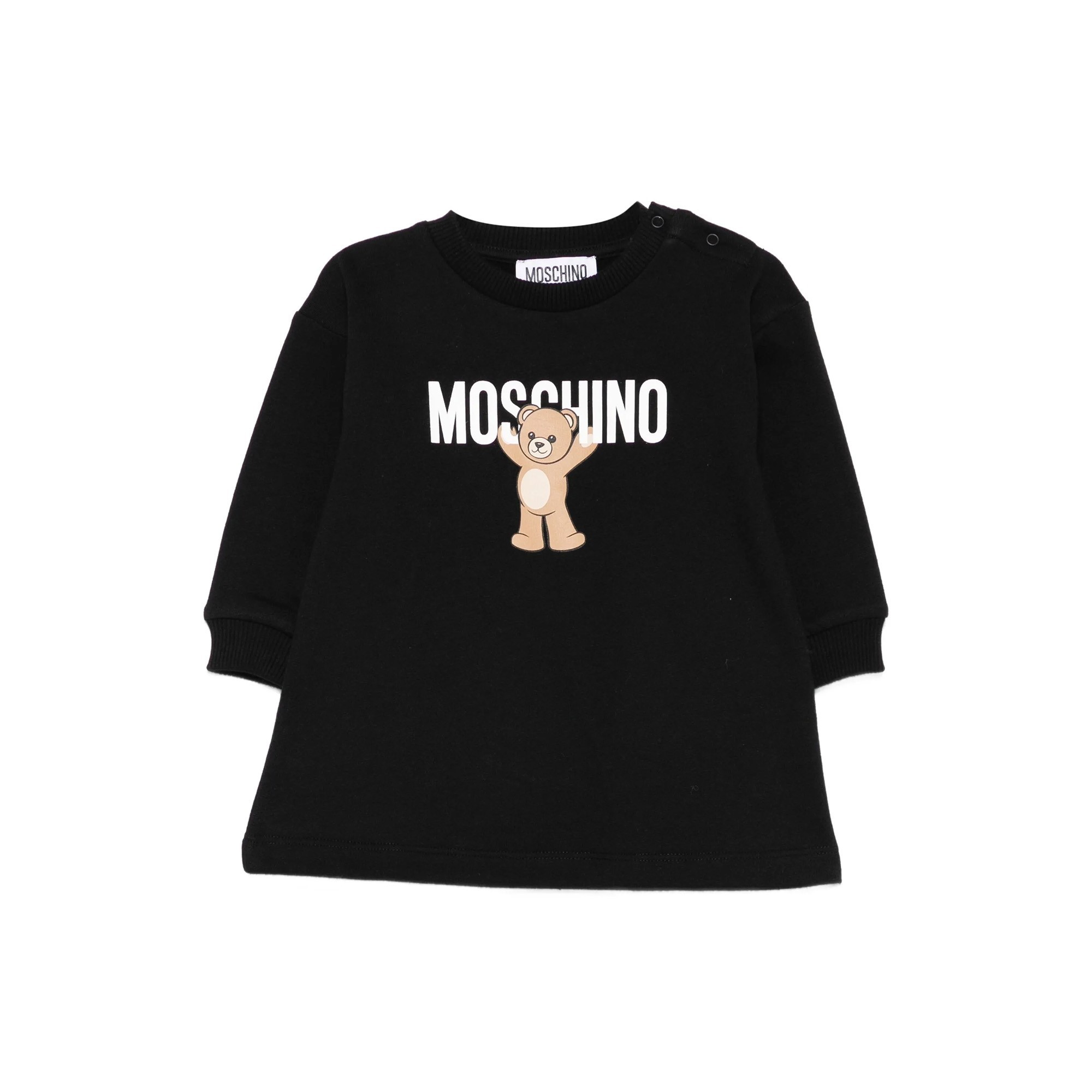 MOSCHINO Abito nero con orsetto e logo neonata
