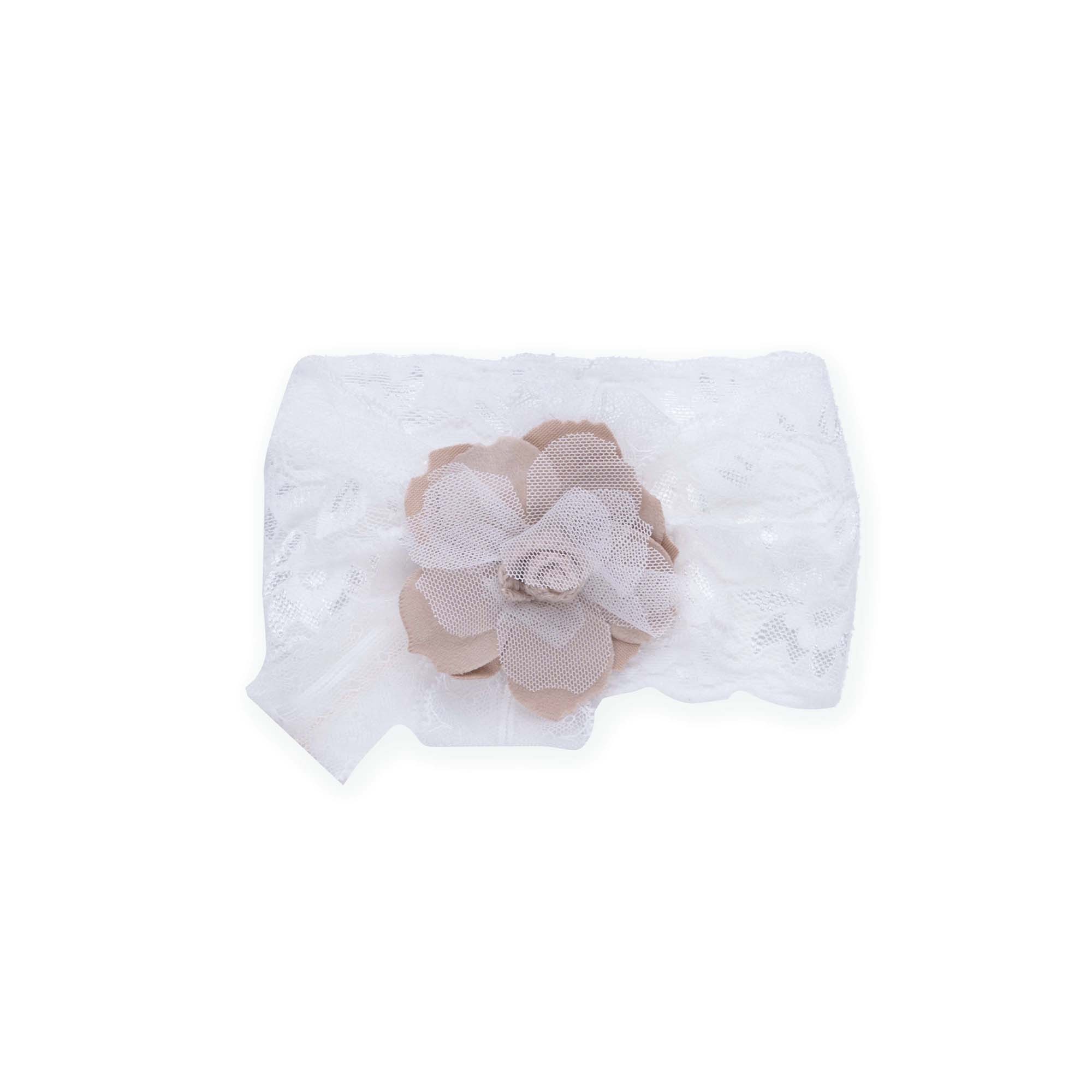 MARLU' Fascetta bianca con fiore beige neonata