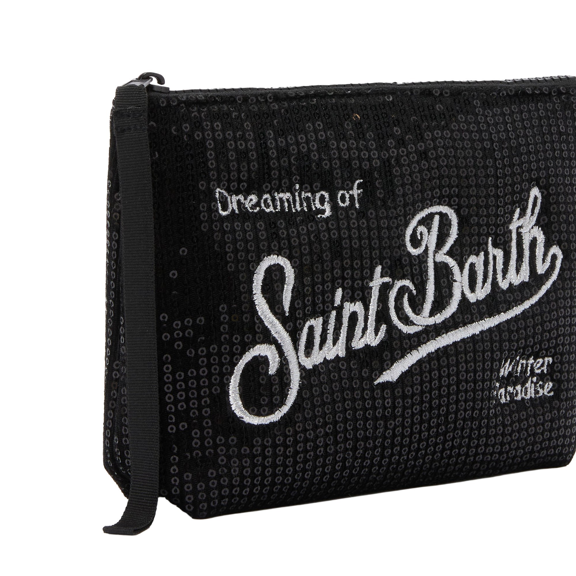 SAINT BARTH Pochette Aline nera con paillettes bambina