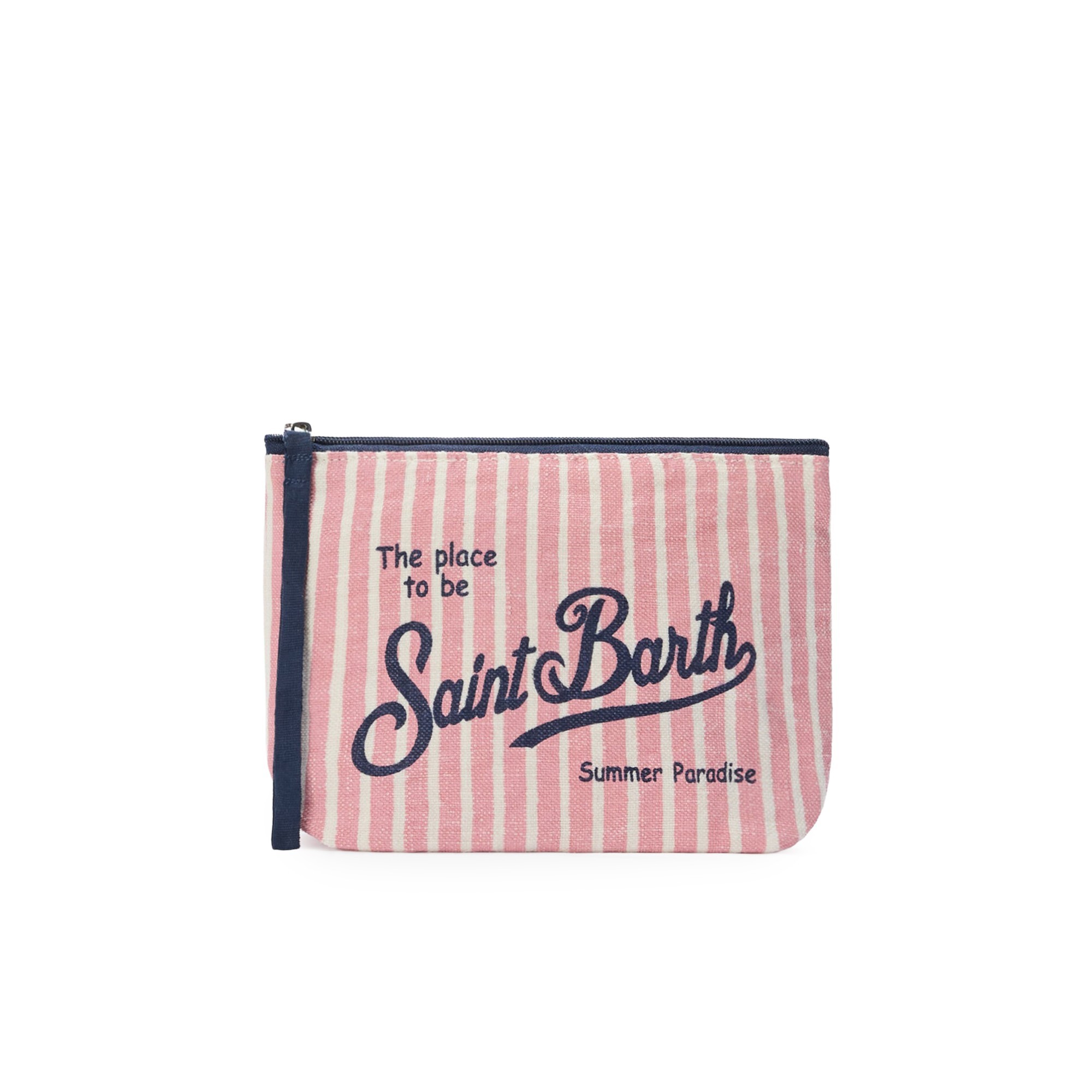 SAINT BARTH Pochette a righe rosa in lino bambina