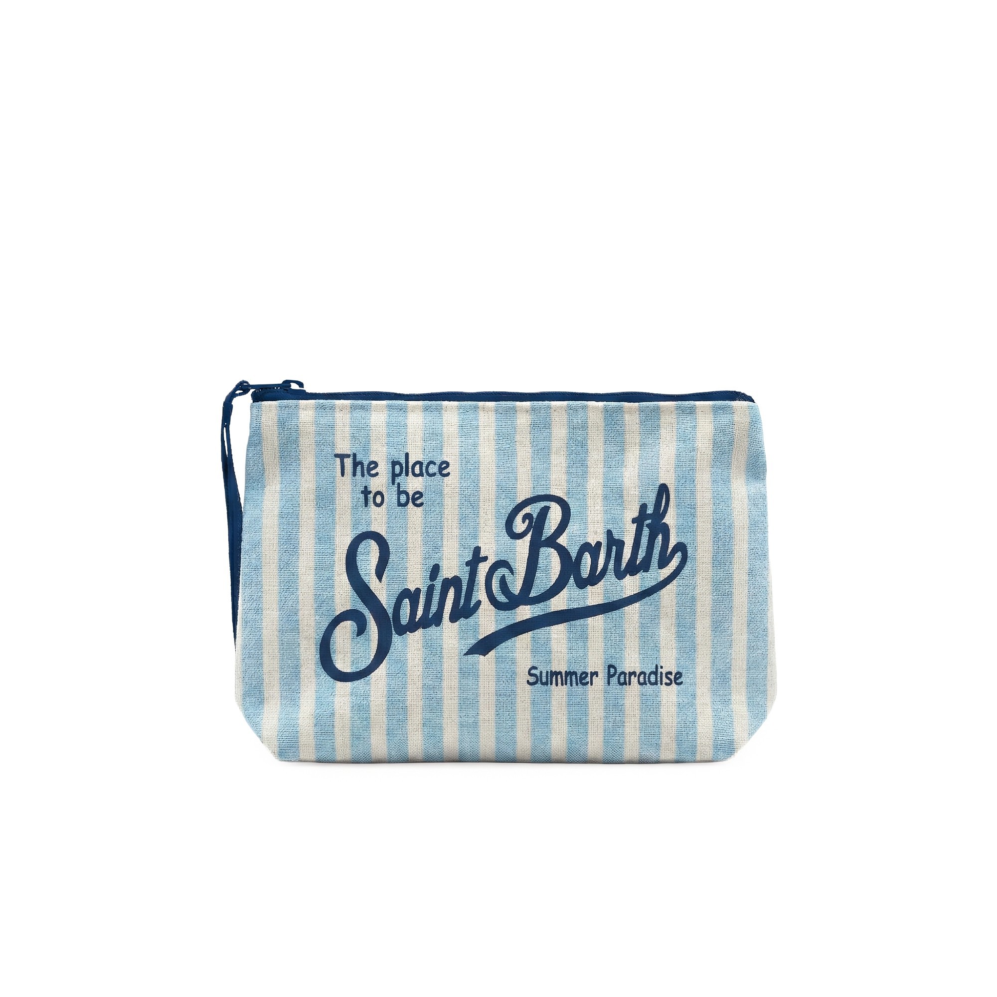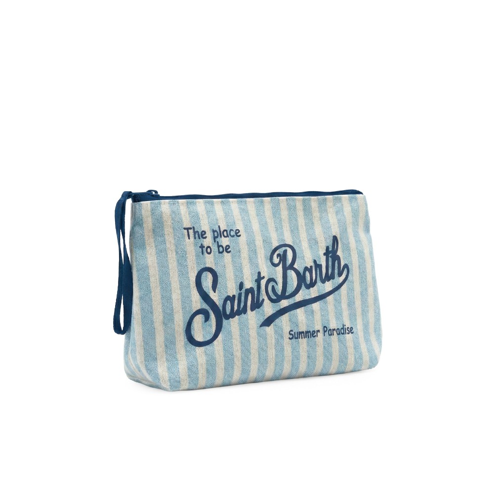 SAINT BARTH Pochette a righe celesti in lino bambina