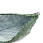 Realizzata in lino, salvia con ricami bianchi, interno a righe celesti,