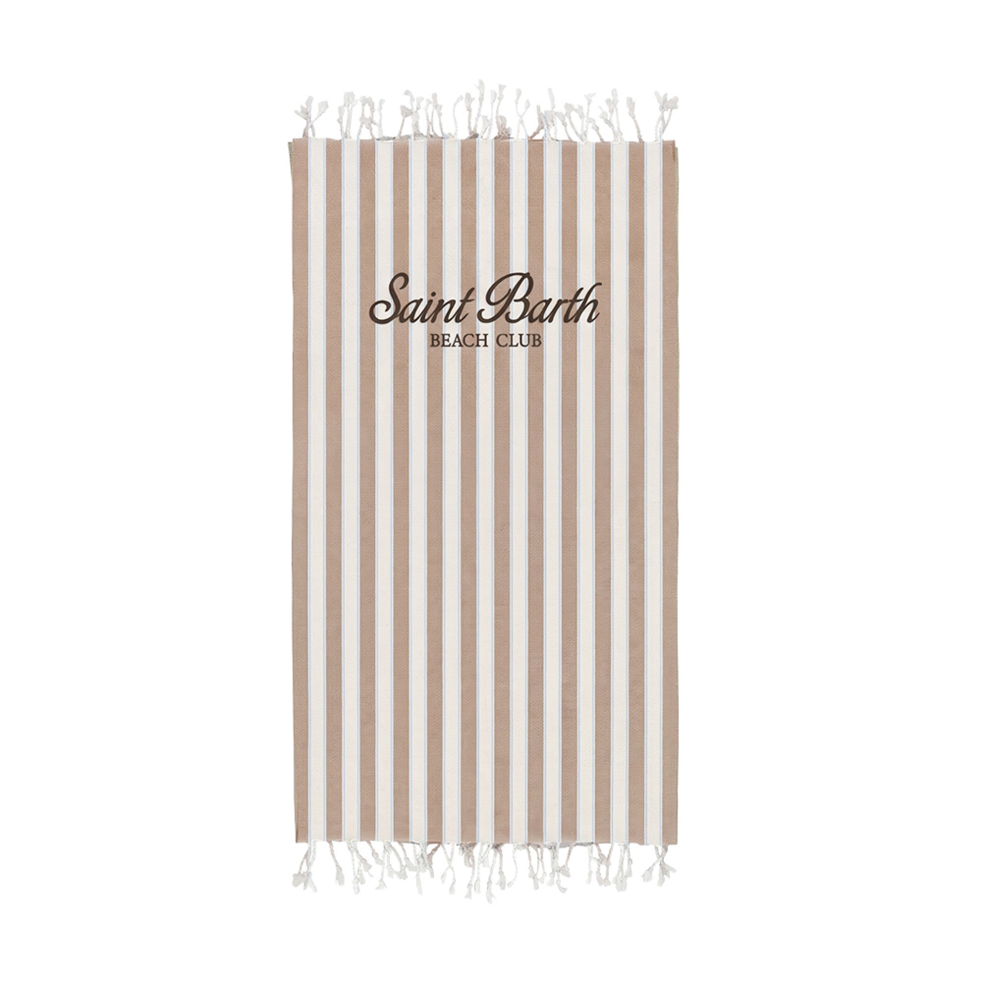 SAINT BARTH Telo mare a righe marroni con logo bambini